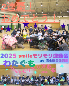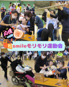 smileモリモリ運動会とは、静岡市内の生活介護5事業所で開催している合同運動会です。参加事業所は清水区「なぎさホーム」「そら」「ここ」、駿河区の「さにぃ」、葵区の「わたぐも」です。
